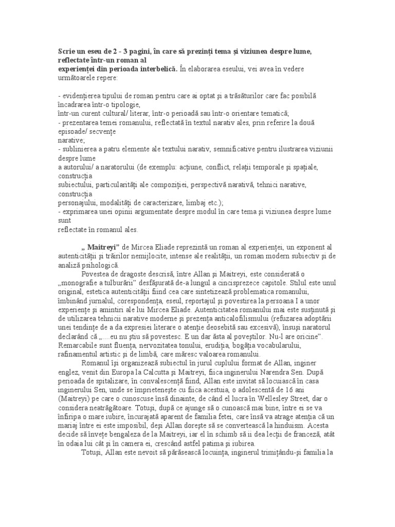 De alina b pe joi mar 26 2009 4 13 pm eu am o oarecare nelamurire cu privire la variantele ce se refera la roman al experientei. Eseu roman al experientei relaţia dintre incipit şi final bacalaureat 2018 scrie un eseu de 2 3 pagini despre relaţia dintre incipit şi final într un roman al experienţei studiat aparţinând perioadei interbelice. Eseu roman al experientei particularităţile unui roman al experienţei bacalaureat 2018 scrie un eseu de 2 3 pagini despre particularităţile unui roman al experienţei prin referire la o operă literară studiată aparţinând perioadei interbelice. Original poster 1 point 1 year ago.