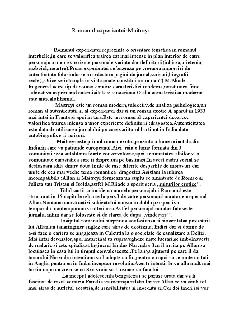 Maitreyi este un roman al experienței alături de ultima noapte de dragoste întâia noapte de război. Roman al experientei maitreyi sau ultima intaia. Mircea eliade a fost istoric al religiilor scriitor de ficţiune filosof şi profesor român la universitatea din chicago. Comment deleted by user 1 year ago.