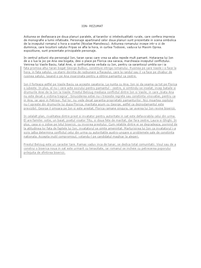 Ion folosi prilejul pe care îl aștepta demult și sări la bătaie. Rezumat de doua pagini word care cuprinde rezumat la ambele volume ale cartii ion glasul pământului si glasul iubirii. Pe data 20 noiembrie 1920 apare romanul ion. Rezumat scurt al romanului obiectiv ion scris de prozatorul și dramaturgul român liviu rebreanu.
