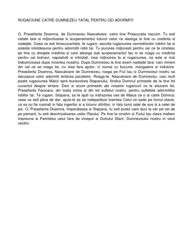 Rugaciune catre dumnezeu tatal pentru cei adormiti o preasfanta doamna de dumnezeu nascatoare catre tine preacurata nazuim.