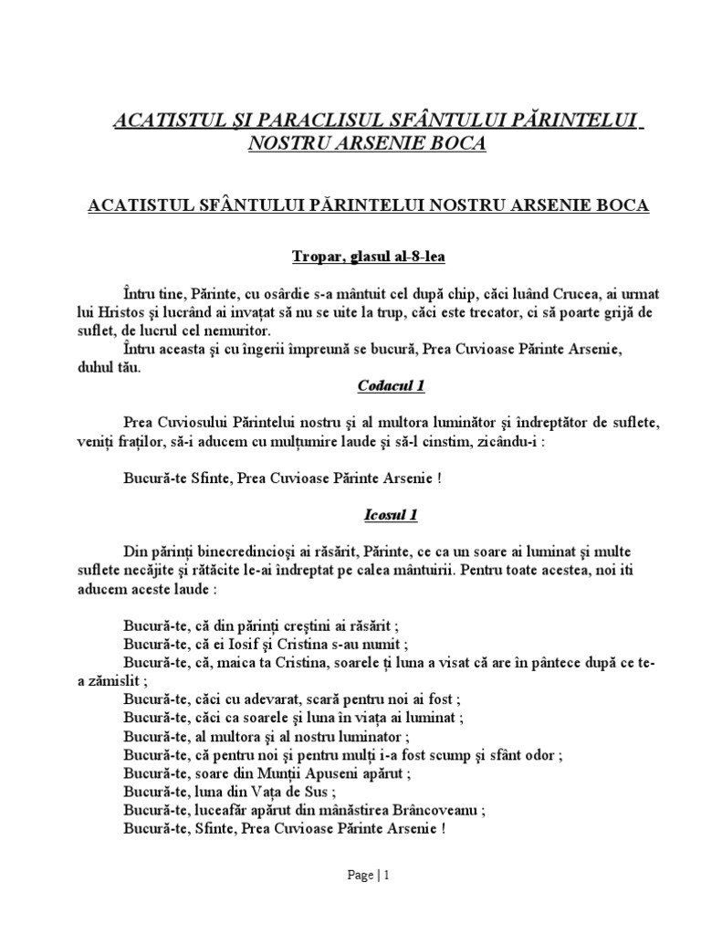 Acatistul preacuviosului arsenie boca protector al familiei 28 11 noiembrie decembrie de către. Sfinte prea cuvioase parinte arsenie ajuta ma in necazurile cele multe mijloceste la domnul pentru familia mea amin. S lava tie dumnezeul nostru slava tie. Http www sfantulardealului blogspot ro aceasta este pagina web unde veţi găsi adunate foarte curînd cele mai relevante materialele care circulă în mediul.