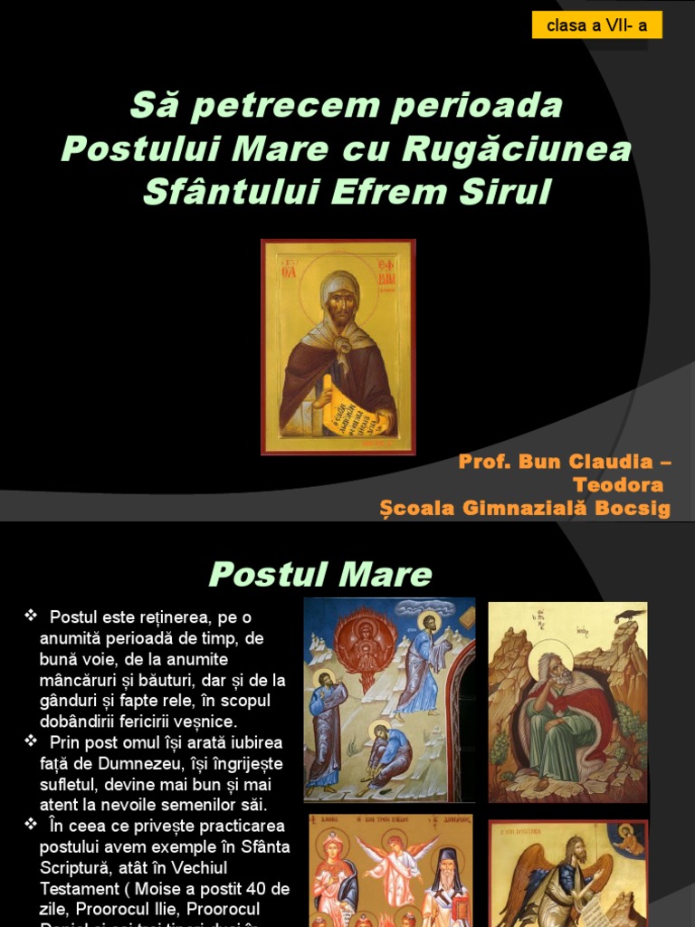 E de mare folos în problemele cu care te confrunţi postul paştelui a început iar creştinii trebuie să fi mult mai atenţi la comportamentul lor la ceea ce fac şi ce spun. în această perioadă este bine să spui o rugăciune atribuită sfântului efrem sirul considerată cea mai puternică din postul paştelui. De ce si in ce fel ar trebui sa tinem postul mare. Dumnezeul nostru nadejdea tuturor marginilor pamantului si a celor ce sunt pe mare departe cel ce mai inainte ai tocmit prin legea ta cea veche si cea noua aceste zile de post la care ne ai invrednicit sa ajungem acum pe tine te laudam si tie ne rugam.