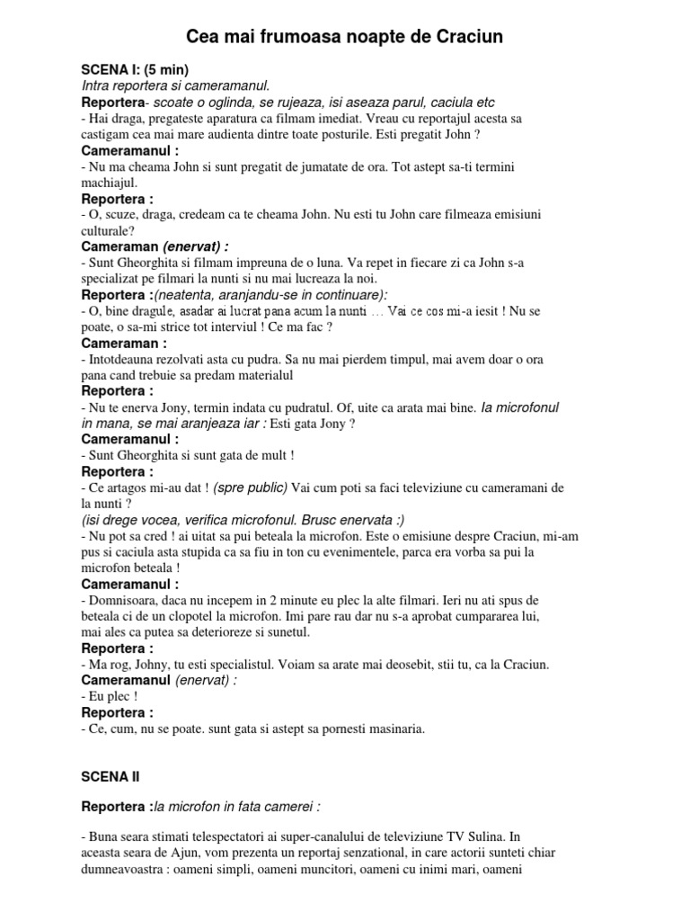 Poezii si scenete de craciun. Fiind o admiratoare pasivă a teatrului sper că şi voi tot de ceva timp incerc să postez scenarii de scenete pe diferite tematici. Numele fecioarei era maria. 0 stele 0 review uri.