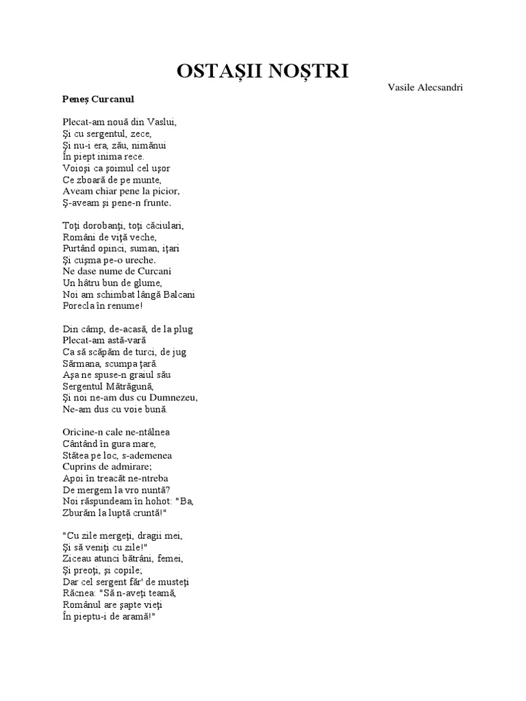 Sergentul pe drumul de costise ce duce la vaslui venea un om cu jale zicind în gindul lui. Vasile alecsandri sergentul pe drumul de. La 14 decembrie poezia era expediată lui iacob negruzzi pentru revista convorbiri literare unde se publică pentru întâia oară în nr. Sbura ca o lumina de glorie mareata si n ochii lui de vultur adanci vioi si mari treceau lucioase umbre de eroi legendari.
