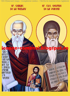 Sf onufrie de la vorona. între numeroşii părinţi ce au sfinţit pământul ţării noastre prin înalta lor viaţă duhovnicească se numără şi cuviosul onufrie cel mai mare sihastru al ţinuturilor botoşănene vieţuitor al schitului sihăstria voronei. Sfântul cuvios onufrie de la vorona 9 septembrie troparul cuviosului onufrie de la sihăstria voronei glasul al 8 lea. Proclamarea oficială a canonizării a avut loc pe data de 8 septembrie 2005 la mănăstirea vorona și pe 9 septembrie la mănăstirea sihăstria voronei. în ședința sa de lucru din 5 6 iulie 2005 sfântul sinod al bisericii ortodoxe române a aprobat canonizarea cuviosului onufrie de la sihăstria voronei cu data de prăznuire la 9 septembrie.