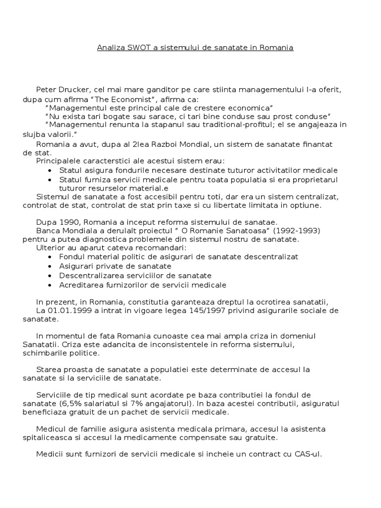 Sistemul de sanatate din romania referat. Dupa al doilea razboi mondial romania a avut un sistem de sanatate de tip semashko finantat de stat. Nicolae stanescu iti recomandam sa te uiti bine pe extras si pe imaginile oferite iar daca este ceea ce ti trebuie pentru documentarea ta il poti descarca. Tratamente fără rezultate lipsa de comunicare și informare infecții luate din spital corupție mortalitate ridicată și medici descurajați. Fondurile necesare desfasurarii tuturor activitatilor din sistem erau asigurate in totalitate de stat statul era proprietarul absolui al tuturor resurselor materiale si furniza serviciile de.