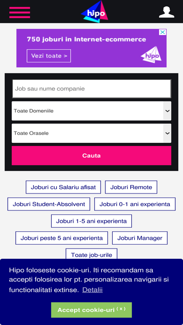 Www hipo ro un site de joburi in crestere cu o oferta buna de joburi in companii foarte mari multinationale hipo ro ofera cele mai multe programe de internship si trainee. Banca de joburi este o agentie de recrutare si plasare a fortei de munca in strainatate si in romania cu experienta de 18 ani in domeniul resurselor umane. Toti angajatorii sunt verificati. Angajari la companii de top joburi part time si full time in toate domeniile.