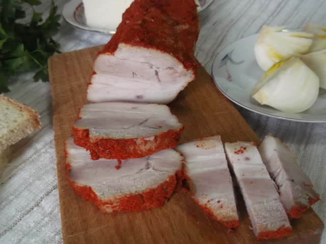 Sunca in acest caz este o bucata faina de burta de porc cu o generoasa fasie de carne pe mijloc. 6 o reteta traditionala un mic dejun cu care isi incepeau bunicii nostri ziua de munca. Puneti le intr o oala adaugati zeama de varza foile de dafin si piperul boabe. Eu de obicei folosesc gusa porcului dar de data aceasta am cumparat slanina de pe burta.