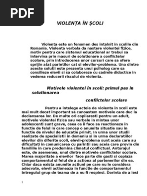 Solutii pentru combaterea violentei gasite de elevi ai colegiului cotea liceului pedagogic si ai liceului cu program sportiv cativa elevi de la colegiul tehnic valeriu d. Metode de combatere a violentei in scoala joi 01 iulie 2010 02 00 arhiva people psihologia educatiei violenta este dezorganizarea unui sistem personal sau social care se traduce printr o pierdere a integritatii fizice materiale psihice. Cotea s au implicat in proiectul directiei judetene de sport si tineret djst valorile open space si au identificat teme pentru care au si propus solutii. Prevenirea şi combaterea violenţei în şcolii psiholog silvia diaconu consilier şcolar la l t l blagaviolenţa conduită agresivă acută cu finalitate distructivă punitivă sau transformativă agresivitatea walman defineşte agresivitatea în următoarele accepţiuni tendinţa de a arăta ostilitate prin manifestarea de acte.