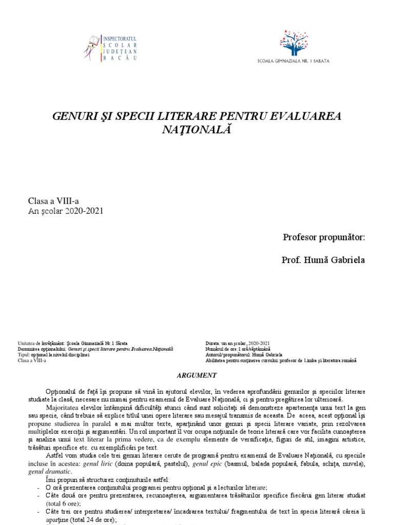 Specii literare pentru evaluarea nationala. Planificări recomandate de comunitatea didactic ro. 15 iulie 2016 09 01. 0 stele 0 review uri. Pe data de 15 iunie 2021 are loc proba de limba si literatura romana pentru evaluarea nationala 2021 a elevilor de clasa a 8 a.