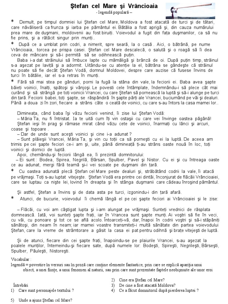 A fost odata mai de mult o batalie mare în hotarele noastre. Atunci ca sa nu cada în mana duşmanilor domnul a taiat o de a dreptul prin codri. Una din cele mai importante statii seismologice din romania se afla in comuna vrancioaia al carei nume este legat de o legenda cu stefan cel mare. învăţământ primar limba şi literatura română lecţii clasa a 2 a.